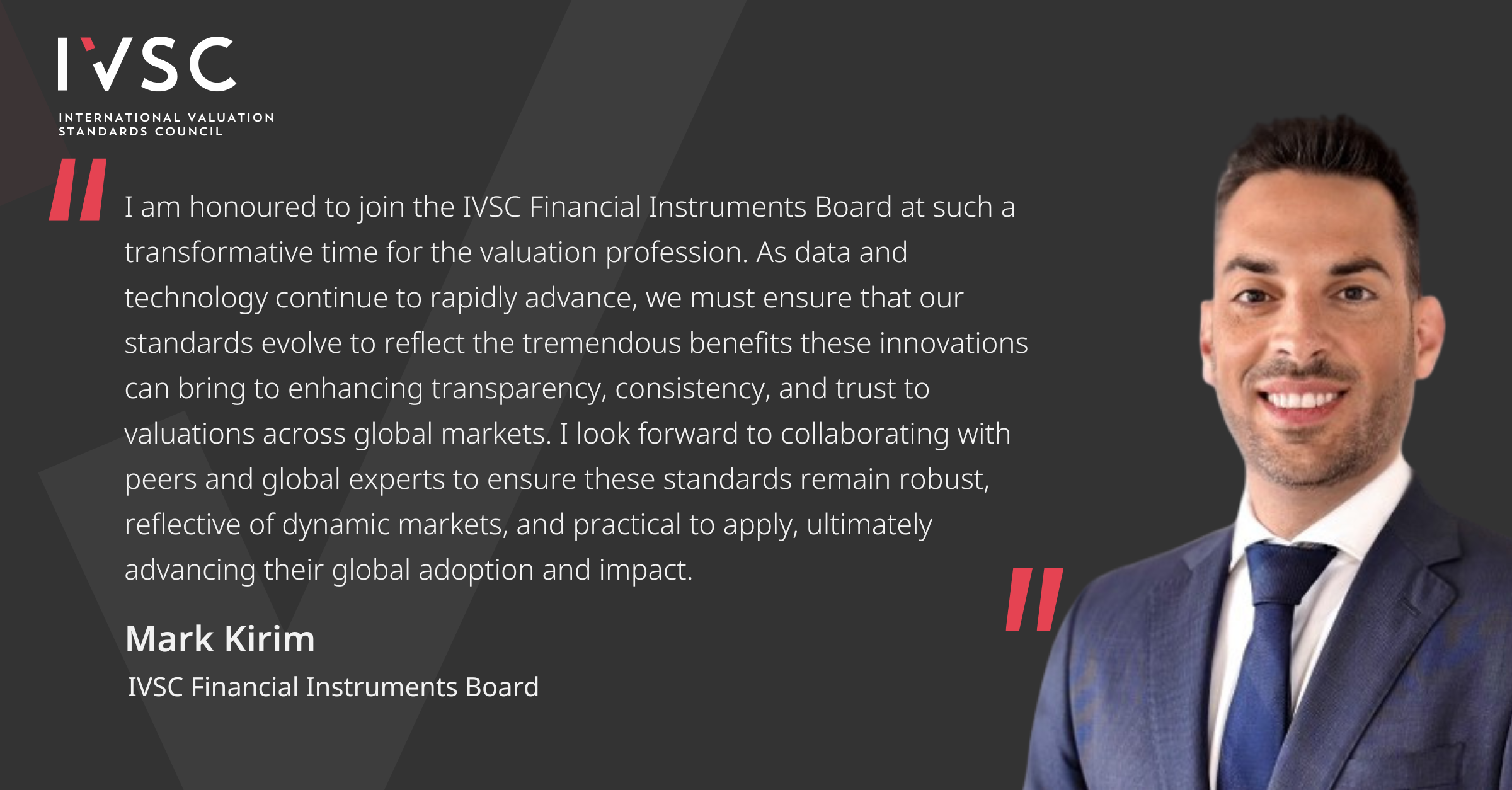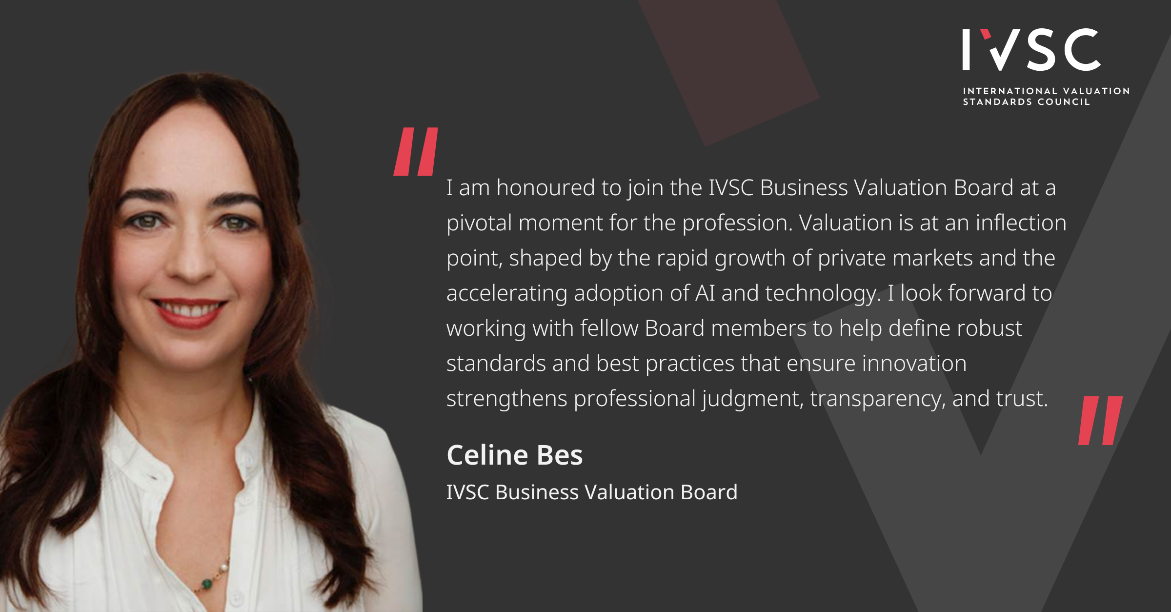 These appointments reinforce IVSC’s commitment to developing globally accepted, principles-based valuation standards that promote transparency, consistency, and confidence across financial markets.